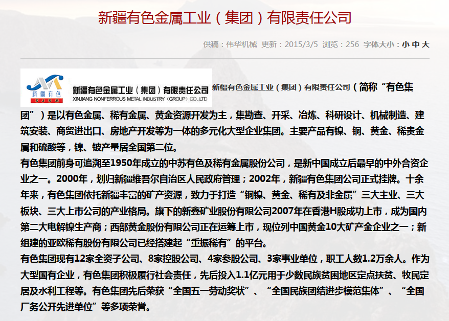 合作單位:新疆有色金屬工業(yè)(集團(tuán))有限責(zé)任公